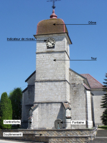 Principe d'installation d'un réservoir d'eau de sécurité incendie dans le dôme d'un clocher |