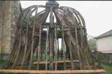 | Le dôme a été descendu au sol pour refaire la charpente à l'identique