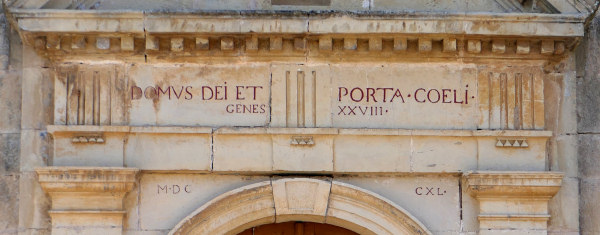 | Ci-dessous le portail de l'entrée de l'église et détail du motif de tuiles du clocher, photos Y. Bessero août 2025
